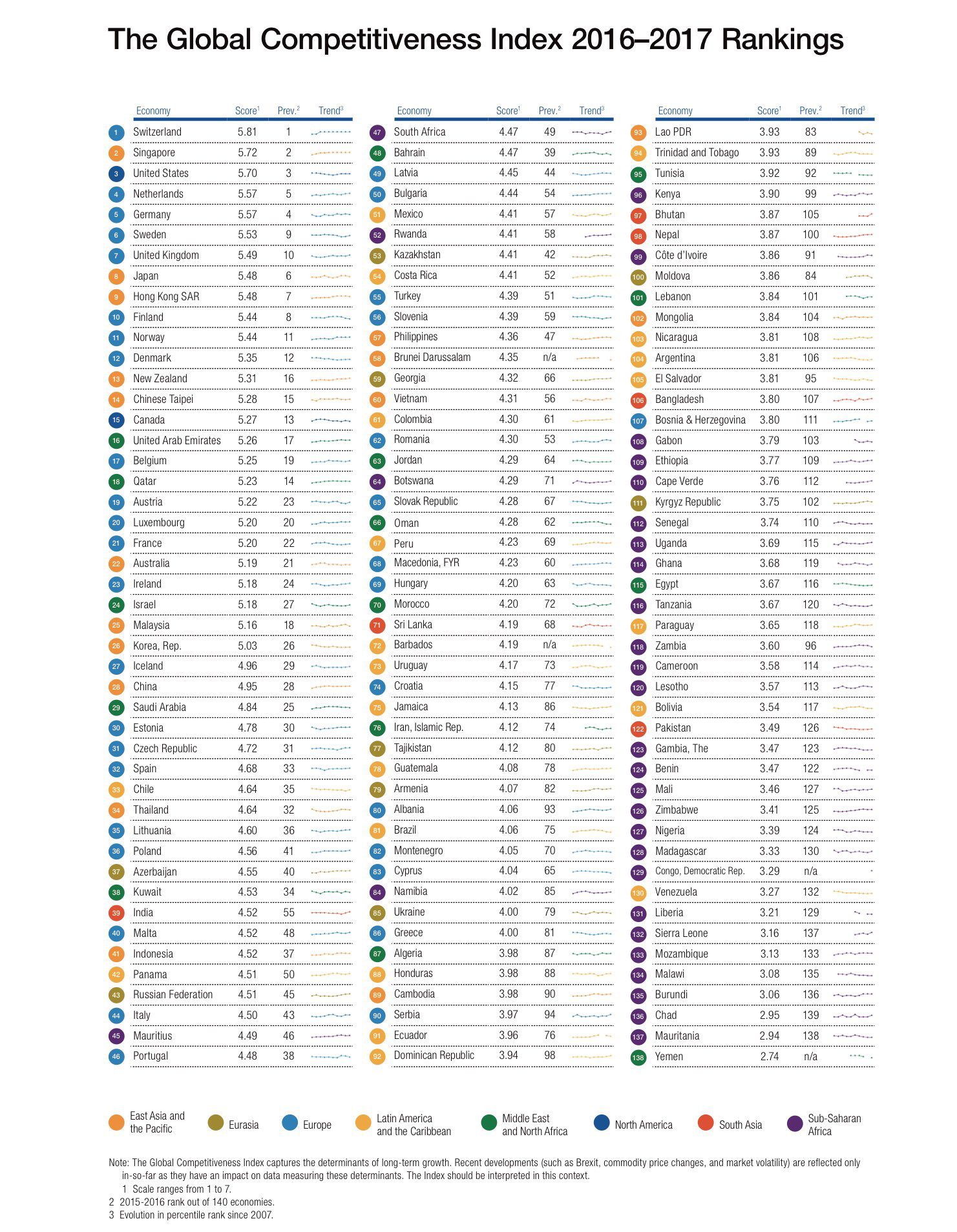 On the global scale, Switzerland, Singapore, United States, Netherlands and Germany completed the top 5 economies with scores of 5.81, 5.72, 5.70, 5.57 and 5.57 respectively.