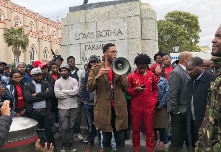 #FeesMustFall Students from various universities asking President Cyril Ramaphosa to pardon active leaders arrested during the protest